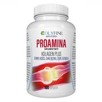 PROAMINA przeznaczona jest dla wszystkich osób, które chcą zadbać o swój organizm, a w szczególności sportowców i ludzi starszych, aby ich stawy były bardziej wytrzymałe. 1 kapsułka 2 x dziennie w trakcie lub po posiłku. Skład: z pudełka Preparat może zawierać śladowe ilości ryb i siarczanów