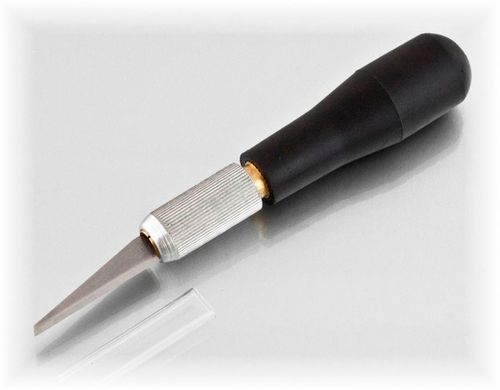 Nóż #7 w komplecie z plastkikową nakładką zabezpieczającą ostrze.