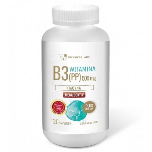 Witamina B3 z Niacyną - całkowicie naturalny suplement diety, w którym nie ma miejsca na niepotrzebne wypełniacze i konserwanty. Dzięki swojemu wysublimowanemu składowi możemy mieć pewność absolutną, że nie przyniesie od niepożądanych, negatywnych skutków. Ponadto przez fakt, iż suplement jest w wygodnej formie kapsułek jego stosowanie jest banalnie proste. Jedno opakowanie produktu to, aż 4 miesiące regularnego stosowania, co czyni produkt Progress Labs niezwykle ekonomicznym. Właśnie taka jego suplementacja to świetny sposób na poprawę metabolizmu, zachowanie funkcji psychologicznych na właściwym poziomie oraz przeciwdziałanie zmęczeniu. Dodatkowo witamina B3 i niacyna to dobry sposób na poprawę stanu błon śluzowych.