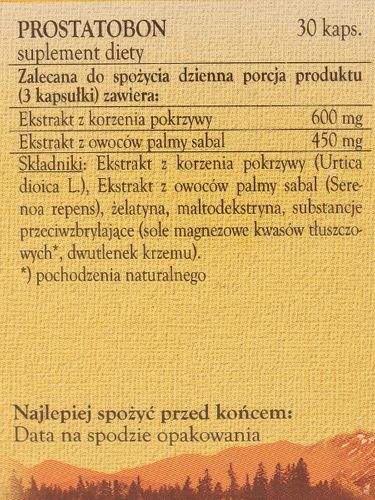 Zalecana do spożycia dzienna porcja produktu (3 kapsułki) zawiera: Ekstrakt z korzenia Pokrzywy 600mg, Ekstrakt z owoców Palmy sabal 450mg