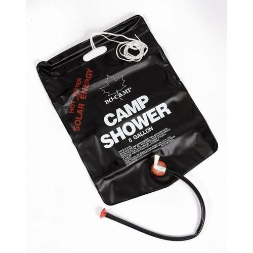 Przenośny prysznic turystyczny. Niezbędny tam gdzie jest ograniczony dostęp do bieżącej wody. Pozwala cieszyć się prywatnym prysznicem ale również niezastąpiony w survivalowej kuchni. Zajmowania mało miejsca. Łatwy do zamocowania za pomocą linki. Woda podgrzewana za pomocą energii słonecznej. Wystarczy na jedną kąpiel. Po użyciu można ponownie napełnić wodą.