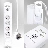 Przedłużacz z 4 gniazdami ze zintegrowanymi złączami USB do ładowania telefonów. Posiada zabezpieczenie anty-przepięciowe. Przydatny w biurze oraz domu.