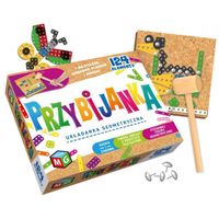 PRZYBIJANKAPRZYBIJANKAKreatywna zabawka edukacyjna, pozwalająca tworzyć niemal nieskończoną ilość fantazyjnych obrazków, oferująca wspaniałą zabawę oraz idealny sposób na rozwijanie swojej wyobraźni! W zestawie tablica korkowa, młotek, pinezki i zestaw kolorowych blaszek. Wersja duża.