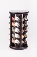 Stojak obrotowy z przyprawami polskiej firmy GALD wykonany z drewna bukowego trwale pokrytego potrójną warstwą lakieru ekologicznego. Pojemniki szklane z plastikowymi nakrętkami dostępne w wersji matowej lub z połyskiem.