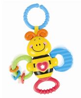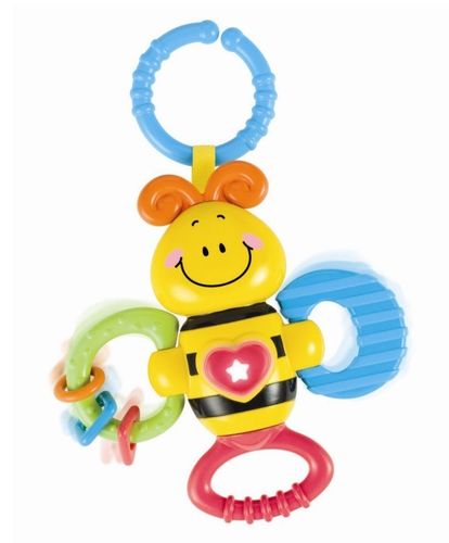 Radosna grzechotka jest niezwykle funkcjonalna oraz atrakcyjna. Kiedy maluch potrząsa zabawką, słyszy grzechoczące krążki.