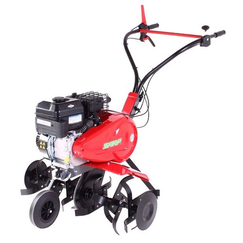Główne zalety francuskiej glebogryzarki Pubert Terro S6B2: Dużą wydajność pracy zapewnia amerykański, górnozaworowy silnik Briggs&Stratton serii 950, z momentem obrotowym na poziomie 12,88Nm, żeliwną tuleją cylindra i dużym, 3-litrowym zbiornikiem paliwa; Układ tnący montowany zawleczkami umożliwia dostosowanie szerokości roboczej w zakresie 40, 60 lub 80cm; Bezawaryjną eksploatację, szczególnie podczas pracy pod dużymi obciążeniami, zapewnia system napędu z przekładnią łańcuchową oraz wodoszczelnym uszczelnieniem na przekładni wałka Ø 25mm; Wygodną pracę gwarantują kierownica z 4-stopniową regulacją pionową oraz transportowe kółko przednie z możliwością złożenia do pracy; Glebogryzarkę można doposażyć w akcesoria uzupełniające typu koła stalowe z obsypnikiem lub kopaczkę do ziemniaków. Nazwa produktuGlebogryzarka francuska Pubert Terro S6B2Nr katalogowy3000481801Sugerowana powierzchnia do … (m2)1000Marka silnikaBriggs&StrattonModel silnika950 OHVTyp silnikaspalinowy czterosuwowyPojemność silnika (cm³)208Pojemność zbiornika oleju (L)0.6Pojemność zbiornika paliwa (L)3.1RozruchręcznySzerokość robocza (cm)40, 60, 80Regulacja prędkości napędunie - stała prędkośćKorpusstalFunkcjedzielone nożeUchwytregulowany (pionowo)Biegi w przód1Biegi w tył1Prędkość obrotowa noży (obr/min)120Ilość zestawów noży3Waga (kg)55Gwarancja konsument24 miesiące