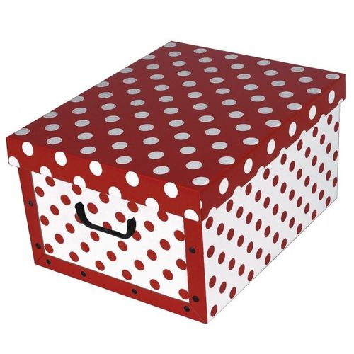 Ozdobne pudełko kartonowe z pokrywą do przechowywania. Praktyczne, funkcjonalne, zaprojektowane z dbałością o najdrobniejsze szczegóły. Wykonane z wysokiej jakości, wytrzymałego, kaszerowanego kartonu z połyskiem. Ścianki boczne spięte plastikowymi nitami. Solidne uchwyty z PCV ułatwiają przenoszenie. Produkt zaprojektowany tak, aby maksymalnie ułatwiać montaż, a jednocześnie gwarantuje najwyższą estetykę wykonania.