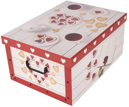 Ozdobne pudełko kartonowe z pokrywą do przechowywania. Praktyczne, funkcjonalne, zaprojektowane z dbałością o najdrobniejsze szczegóły. Wykonane z wysokiej jakości, wytrzymałego, kaszerowanego kartonu z połyskiem. Ścianki boczne spięte plastikowymi nitami. Solidne uchwyty z PCV ułatwiają przenoszenie. Produkt zaprojektowany tak, aby maksymalnie ułatwiać montaż, a jednocześnie gwarantuje najwyższą estetykę wykonania.