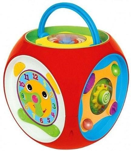 Zabawka jest pełna niespodzianek, światełekoraz wypełniona zabawnymi dźwiękami prawiew każdym miejscu. Posiada 6 różnych stron,a każda z nich to nowa interesująca zabawa.Dziecko może zagrać na mini pianinku, bawićsię kolorowym zegarkiem, poznać zwierzątkai ich odgłosy. Kostka posiada mnóstwoatrakcji, które nagrodzą Maluszka kolorowymiświatełkami i wesołymi melodyjkami.UWAGA! W zabawce znajdują się baterie testowe o małej pojemności, co może być przyczyną słabszego działania. Zaleca się wymianę na nowe, alkaliczne. Jeżeli zabawka nie funkcjonuje prawidłowo, należy wyłączyć zabawkę i włączyć ponownie. Jeśli problem nie ustąpi należy wymienić baterie na nowe.UWAGA! Baterie zawarte w zabawce są także przeznaczone do demonstracji w sklepie. Może się zdarzyć, że baterie się wyczerpią przed zakupem przez klienta i klient będzie musiał wymienić zawarte baterie na nowe w celu uzyskania poprawnego działania zabawki.