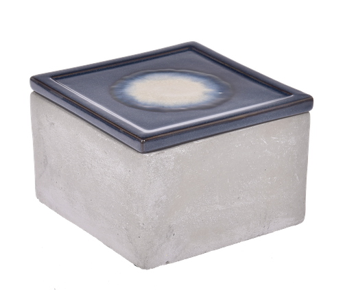 Ceramiczne pudełko Violet o wymiarach 13x13cm i wysokości 9cm. Piękne pudełko w szarym kolorze z niebieskim wiekiem pozwoli na przechowywanie drobnych przedmiotów i jednocześnie uzupełni aranżację salonu czy sypialni.