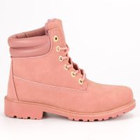 Różowe trapery damskie w cholewą ponad kostkę. Buty sznurowane z wkładką i ociepleniem z koca obuwniczego. Podeszwa z tworzywa sztucznego z bieżnikiem. Trapery do dżinsów i do sukienki. Idealnie sprawdzą się jesienią i zimą do codziennych stylówek. Różowe trapery to hit sezonu! Wybierz swój rozmiar i kup teraz!