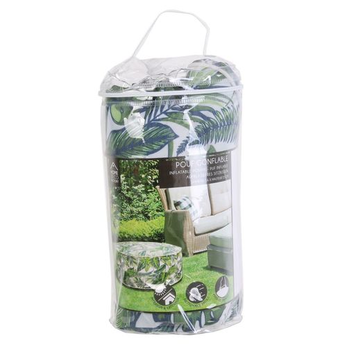 Pufa Jungle to nowoczesny mebel nie tylko do mieszkania, ale również do ogrodu. Dmuchana puf została zrobiona z poliestrowej tkaniny. Ciekawe kwieciste wzory, jakimi została ozdobiona, są trwałe i nie wypłowieją od promieni UV. Dzięki temu, że pufa jest dmuchana, możemy złożyć ją do bardzo małych rozmiarów i schować, a gdy tylko będzie potrzebne dodatkowe siedzisko wyjąć i napompować. Wysokość: 25