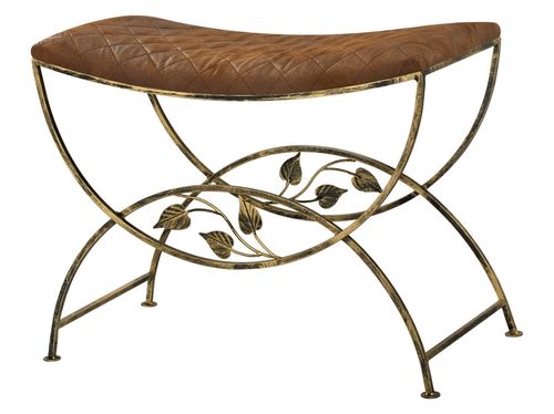 Przepiękna, delikatnie przyzdobiona pufa, która może służyć jako krzesełko do toaletki w sypialni bądź jako pufa do przedpokoju czy ganku. W całości wykonana jest z pełnego metalu. Siedzisko zostało pieczołowicie przygotowane metodą gięcia drewna.