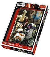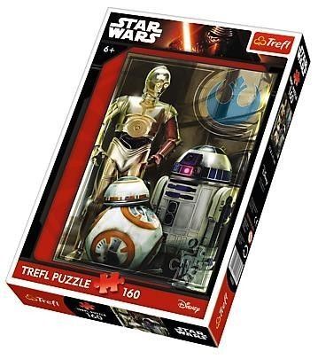 Puzzle 160 elementów z droidami C-3PO, R2-D2 i BB-8 z VII epizodu sagi Star Wars. Doskonały pomysł na prezent dla wszystkich fanów Gwiezdnych Wojen. Po ułożeniu powstanie obrazek o wymiarach 27,8x41 cm. Wysoką jakość, nasycenie kolorów i bezpieczeństwo układania zapewnia kalandrowany papier odbijający światło i wykorzystanie materiałów ekologicznych.