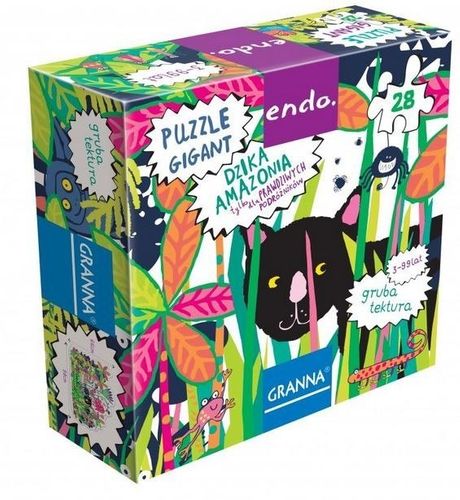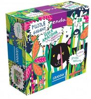 Gigantyczne puzzle podłogowe, składające się z 28 elementów. Każdy z nich jest dwustronny, pierwsza strona to klasyczne puzzle, a druga to kolorowanka dla najmłodszych. Wszystkie elementy zostały wykonane z grubej, wytrzymałej i bezpiecznej dla dzieci tektury.