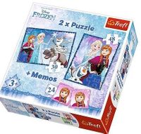 Podwójna radość układania! Puzzle 2w1 "Siostry" to dwie układanki różnej wielkości z obrazkami przedstawiającymi bohaterów filmu animowanego Disneya. Zestaw doskonale spełnia oczekiwania rodzeństwa - każdy ułoży swój ulubiony obrazek nawet w tym samym czasie. Zróżnicowana liczba elementów pozwala na zabawę zarówno młodszym, jak i nieco starszym dzieciom. Dodatkowym urozmaiceniem zabawy są karty memo z postaciami bajki.