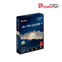 Opakowanie zawiera puzzle 3D, które umożliwiają złożenie podświetlanego diodami LED modelu Pałac Luwr.