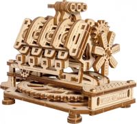 Przedstawiamy naszą drewnianą układankę 3D silnika spalinowego w kształcie litery V wykorzystywanego w samochodach wyścigowych Formuły 1. Wszystkie części są ruchome: 8 cylindrów, tłoki, wał korbowy i wentylator. Dla prawdziwych miłośników mechaniki samochodowej!