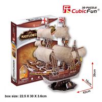 Opakowanie zawiera puzzle 3D, które umożliwiają złożenie modelu Żaglowiec Mayflower.