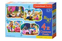 4 x Puzzle 3+4+6+9 to konturowe puzzle dla najmłodszych, składające się z czterech oddzielnych obrazków o zróżnicowanym stopniu trudności.