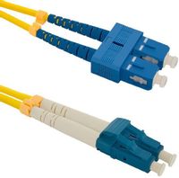 Patchcord SC/UPC - LC/UPC, o długości 5 m. Rodzaj patchcorda: Jednomodowy. Typ transmisji światłowodowej: Duplex. Włókno G652D. Typ włókna: 9/125. Średnica rdzenia włókna: 9 µm. Średnica płaszcza włókna: 125 µm. Zewnętrzna niepalna powłoka kabla. Średnica kabla: 3 mm. Tłumienność: <0.3 dB.