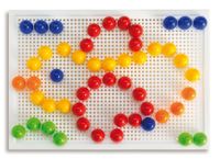 QUERCETTI MOZAIKA FANTACOLOR PORTABLE LARGE (KOTEK) - Tworzenie mozaiki poprzez wstawianie kołeczków w perforowaną tablicę zgodnie z proponowanym wzorem bądź własną wyobraźnią jest wspaniałą i twórczą zabawą. Zabawka stymuluje rozpoznawanie kolorów, rozwija umiejętności manualne oraz koordynację ruchową. Zestaw składa się z 100 kołeczków o średnicy Ø-10, kartonowych kart – wzorów oraz walizeczki z rączką, która po rozłożeniu staje się podstawką i tabliczką o wymiarach 28x20cm.