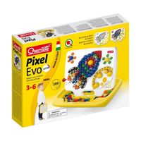 QUERCETTI MOZAIKA PIXEL EVO SMALL, tworzenie mozaiki poprzez wstawianie kołeczków w perforowaną tablicę zgodnie z proponowanym wzorem bądź własną wyobraźnią jest wspaniałą i twórczą zabawą. Zabawka stymuluje rozpoznawanie kolorów, rozwija umiejętności manualne oraz koordynację ruchową. Zestaw składa się z 160 kołeczków o różnej średnicy, 3 wzorów oraz walizeczki z rączką, która po rozłożeniu staje się podstawką i tabliczką o wymiarach 22 x 19cm. Zabawka została wyprodukowana we Włoszech.Wiekod 3 lat