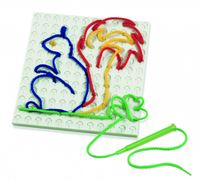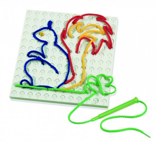 Aby zacząć tworzyć wzory, wystarczy wcisnąć długopis z nawleczoną sznurówką w samoblokujący się otworek. Zestaw zawiera szablony do odwzorowywania i album z przykładami, tablicę, 4 szydełka i 8 sznurówek. Zabawka została wyprodukowana we Włoszech.