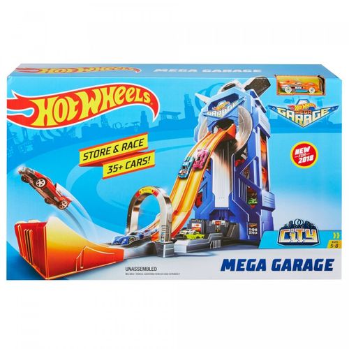 Twórz odjazdowe przygody i ciesz się zakręconą realistyczną zabawą pojazdami przy użyciu tego Rajdowego garażu! Ten ogromny pionowy parking ma kołyszące się karuzele do przechowywania pojazdów, które służą też jako winda, oraz tor do równoległego wyścigu z samego szczytu konstrukcji. Rozmiary tego Rajdowego garażu robią ogromne wrażenie, ale jednocześnie jest on kompaktowy i oferuje miejsce na ponad 35 samochodów Hot Wheels.
