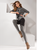 Stylowe, grube, bawełniane rajstopy, idealne na sezon jesień-zima. Góra gładka i czarna, dół szary i prążkowany. To dwie części sprytnie połączone ze sobą. Rajstopy świetnie sprawdzą się w duecie z botkami, tunikami i ogólnie milutkimi sweterkami z grubej przędzy. Skład: 75% bawełna, 20% poliamid, 5% elastan.