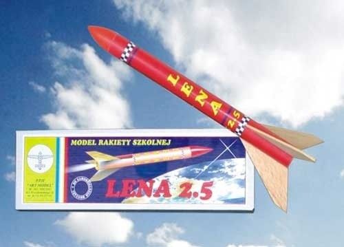 Rakieta LENA 2.5 ze spadochronem, to model z taśmą hamującą, wykonany z kartonu, balsy, papieru i plastiku. Odpowiednia dla początkujących modelarzy, jednak należy pamiętać nad odpowiednim nadzorem dzieci podczas odpalania rakiety. Przeznaczona do samodzielnego złożenia. Zestaw zawiera jedną sztukę silnika pozwalającą na start, kolejne starty będą możliwe po dokupieniu dodatkowych silników.