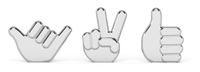 Stojak na zdjęcia Handsup to wykonane z chromowanego metalu trzy dłonie, zainspirowane ikonami ze świata social media. Ustawione na biurku lub półce będą stanowiły humorystyczną dekorację, w której umieścimy ulubione zdjęcia, kartki z przypomnieniami czy bilety na koncert.,Symbol "jest świetnie" ma wymiary 7,5 x 4,9 x 1,9 cm, "znak pokoju" 6,5 x 5,3 x 1,9 cm, symbol "jest ok" 5 x 6,5 x 1,9 cm.