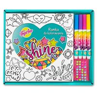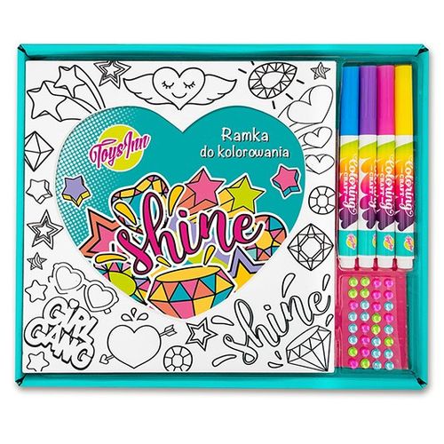 Zestaw z ramką do kolorowania Serce zawiera ramkę, cztery markery oraz samoprzylepne kryształki. Ramka ozdobiona jest modnymi wzorami w stylu shine, do której można włożyć zdjęcie. Kolory markerów: niebieski, fioletowy, różowy i żółty.