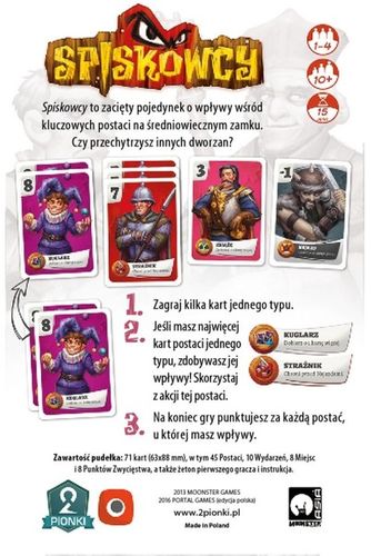 Spiskowcy to polska edycja gry Koryo. To szybka gra karciana przez wielu określana jako "Cytadela dla zaawansowanych". Polskie wydanie posiada zupełnie odświeżoną szatę graficzną, nowe ilustracje, tekst na kartach ułatwiający rozgrywkę i poprawioną instrukcję.
