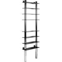 Regał z ramą aluminiową i półkami ze szkła czarnego. Jego nowoczesny design poprawi wygląd każdego pomieszczenia, nada ciekawy, elegancki charakter. Półka ma wiele zastosowań - mogą zostać umieszczone na niej wszelkiego rodzaju przedmioty. Największa komora znajduje się w środkowej części regału, gdzie mogą zostać umieszczone większe rzeczy. Absolutną stabilność tego regału zapewnia przymocowanie do ściany, nie jest to model stojący.