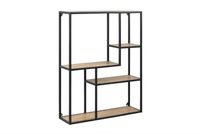 Regał Seafrod wykonany został z metalu oraz płyty MDF laminowanej w kolorze dębu. Asymetryczne rozmieszczenie półek dodaje całości mebla ciekawej formy. Regał doskonale sprawdzi się w pokoju nastolatka, domowym salonie czy przestrzeni komercyjnej. Regał wymaga montażu