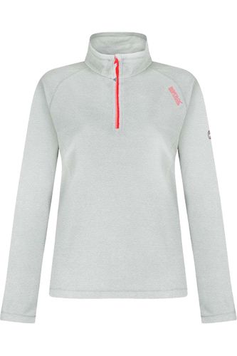 Bluza firmy Regatta w odcieniu siwym. Na długi rękaw. Polarowa, lekka i ciepła bluza, model Montes. Uszyta z przyjemnego i miękkiego w dotyku materiału. Bluza taliowana, dobrze układa się na sylwetce. Bluza ze stójką, chroniącą szyję. Z przodu zapinana na czerwony zamek. Bluza posiada haftowane logo Regatta. Materiał miły w dotyku i wysokogatunkowy.