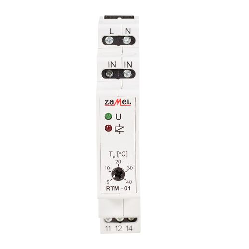 Regulator temperatury RTM-01 służy do sterowania odbiornikami (np. grzejniki, ogrzewanie podłogowe) w zależności od temperatury panującej w otoczeniu zewnętrznego czujnika NTC. Urządzenie posiada możliwość regulacji temperatury zadanej za pomocą potencjometru znajdującego się na panelu przednim