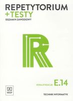 Publikacja przygotowuje do egzaminu potwierdzającego kwalifikacje w zawodzie technik informatyk w zakresie kwalifikacji E.14 (Tworzenie aplikacji internetowych i baz danych oraz administrowanie bazami). Zawiera syntetyczne i obszerne repetytorium wiedzy opracowane zgodnie z nową podstawą programową, 5 zestawów testów do części pisemnej egzaminu, 3 zadania do części praktycznej egzaminu wraz z przykładowymi rozwiązaniami, klucz odpowiedzi do testów oraz wstęp opisujący zasady obowiązujące podczas przeprowadzania egzaminów potwierdzających kwalifikacje w zawodzie (wg nowej formuły). Treści repetytorium oraz testów i zadań praktycznych dotyczą m.in. takich kwestii, jak tworzenie stron internetowych za pomocą języka HTML oraz kaskadowych styli CSS, korzystanie z systemów CMS i edytorów WYSIWYG, obróbka elementów graficznych i multimedialnych wchodzących w skład witryn internetowych, aplikacje internetowe opracowane na podstawie dwóch języków programowania JavaScript i PHP, wykorzystanie programów Access, MySQL i PostgreSQL podczas tworzenia baz danych oraz zasady administrowania bazami danych.