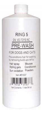Stosowane przed wystawą produkty stylizacyjne pozostawiają czasem na sierści osad, który powinien być jak najszybciej dokładnie usunięty. Do tego celu służy szampon Pre-Wash, który stosujemy do pierwszego mycia, jeszcze przed użyciem właściwego szamponu. Umożliwia on bezproblemowe usunięcie wszelkiego rodzaju żeli, lakierów pudrów i pianek. Szampon ułatwia także usunięcie wyjątkowo uporczywych zabrudzeń.