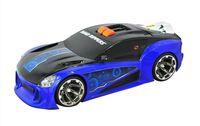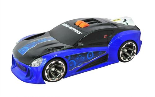 Fantastyczny samochód posiadający 2 przyciski działania aktywujące niebieskie światła, muzykę, silnik i dopalacz. W podwoziu umieszczono podnośnik, dzięki któremu auto unosi się na tylnych kołach. Twoje ulubione pojazdy z funkcją napędu rakietowego. Jedź na jednym kole i włącz rakietowe dopalanie po aktywacji napędu do przodu. Naciskaj przyciski, aby włączyć światła, realistyczne odgłosy i wspaniałą muzykę.