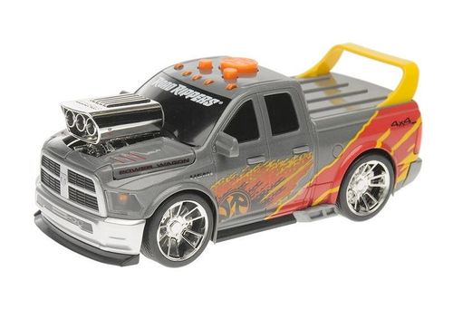 Każdy mały miłośnik motoryzacji zna możliwości potężnych ciężarówek monster truck 4x4. głośny ryk silnika, migające światła, charakterystyczna odgłosy i muzyka to główne cechy ciężarówek z serii road rippers. posiada 3 przyciski działania uruchamiające napęd wraz z dźwiękiem silnika, realistyczne odgłosy i muzykę. w trakcie odtwarzania odgłosów i muzyki świecą światła z przodu pojazdu, natomiast podczas jazdy podnosi się silnik.