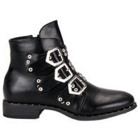 Rockowe, stylowe czarne botki z klamrami to propozycja dla kobiet, które uwielbiają stylizacje z pazurem. Buty są oryginalne, mają ciekawe zdobienia i na pewno nie pozostaną niezauważone. Ich zaletą jest także oferowany komfort – botki wyposażone zostały w solidną podeszwę oraz miękką wkładkę, świetnie sprawdzają się podczas wielogodzinnych spacerów.