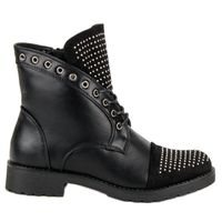 Czarne workery to damskie obuwie utrzymane w rockowym stylu. Buty posiadają ozdobne kryształki, dzięki czemu prezentują się naprawdę efektownie. Mogą być dopełnieniem każdej casualowej stylizacji dla modnej i pewnej siebie kobiety, która szuka połączenia stylowego oraz komfortowego obuwia wysokiej jakości.