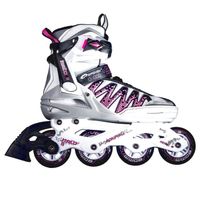 Łyżworolki do jazdy rekreacyjnej. Kółka o twardości 82A doskonale pochłaniają drgania nawet na nierównym podłożu, łożyska klasy ABEC5 Carbon gwarantują dużą precyzję wykonania, dzięki czemu są trwałe a kółka szybsze, zaś wykorzystanie bardziej elastycznej płozy PP zwiększa amortyzację.