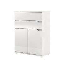 Dane szczegółowe Opis produktu Kod produktu 12271 Materiał płyta MDF Kolor fronty: bia��y, wysoki połysk korpus: biały Wymiary szerokość: 79 cm wysokość: 99 cm głębokość: 35 cm Stan produktu do samodzielnego montażu Cechy charakterystyczne : efektowne dopełnienie umeblowania interesujący element wystroju idealna opcja do minimalistycznych aranżacji prosta stylistyka Wyposażenie: 2 drzwi 2 szuflady Sposób czyszczenia : wilgotna szmatka nasączona czystą letnią wodą Montaż : mebel do samodzielnego montażu każdy mebel posiada instrukcję montażu prosimy skręcać meble według ustalonych zasad Praktyczna komoda – idealnie dopełni eleganckie wnętrze! ROSSO 2 komoda 2+2 to doskonały pomysł na efektowne dopełnienie umeblowania, gdyż jest ona elegancka, praktyczna oraz wykonana szczególnie starannie. Dzięki temu nabiera wielu walorów, tym samym stając się interesującym elementem wystroju. Szczególnie polecana do aranżacji minimalistycznych, gdyż właśnie w takiej stonowanej, zachwycającej wyrafinowaną prostotą stylistyce jest utrzymana. Dlatego taki projekt wiele zmienia we wnętrzu, dodaje mu szyku i nadaje reprezentacyjny charakter. Trzeba też wspomnieć, że taka komoda jest bardzo praktyczna, przydatna w każdym domu – pojemna, z dwiema szufladami i szafkami. Doskonała do salonu, sypialni czy pomieszczenia biurowego, efektowna i funkcjonalna.