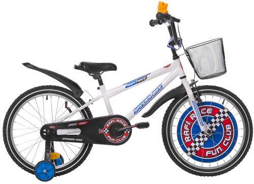 Rozmiar koła 20”, rama stalowa HI-TEN 8,5" Rower zaprojektowany i zbudowany w Polsce,. Naklejki pod wytrzymałą warstwą lakieru proszkowego. Zamknięta osłona łańcucha i osłona kierownicy dla bezpieczeństwa. Dźwignia hamulca dostosowana do potrzeb małych użytkowników. Łatwo działający przedni hamulec typu V-brake i tylny torpedo. Aluminiowe obręcze Piasty stalowe z łożyskami kulkowymi. Plastikowe błotniki. Czarny wspornik kierownicy i kierownica. Odblaski poprawiające widoczność, flaga dekoracyjna. Koszyk z przodu na drobiazgi. Korba mocowana na kwadrat. Kółka pomocniczne, prowadnik, flaga w komplecie, pełna osłona łańcucha, ochraniacze na kierownicę.