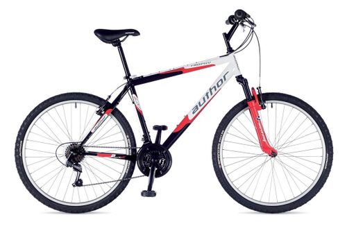 Rama: hi-ten 26" Widelec: MUSTANG (63 mm) Stery: VP COMP. 1" Korba: PROWHEEL 42-34-24 (170 mm) Oś supportu: VP COMP. Przerzutka przednia: SHIMANO TY18 (28,6 mm) Przerzutka tylna: SHIMANO TY21 Manetki: SHIMANO Revoshift (18) Kaseta: SHIMANO MF-TZ20 14-28 (6) Łańcuch: KMC Z50 Piasty: QUANDO 36 otworów Hamulce: V brakes Dźwignie hamulców: Tworzywo/ aluminium Obręcze: Aluminiowe 36 otworów Szprychy: Stalowe Opony: AUTHOR Spanker 26" x 1,95" Pedały: Tworzywo Kierownica: KALIN stalowa 20 mm 620 mm Chwyty kierownicy: PVC Wspornik kierownicy: KALIN stalowy Wspornik siodełka: KALIN stalowy (25,4 mm) Obejma podsiodłowa: AUTHOR (31,8 mm) Siodełko: Vinyl Waga: 16,1 kg/ 19"