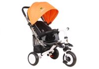 Prezentowany rower trójkołowy swą konstrukcją przypomina wózek typu spacerówka — świadczy o tym rozkładany daszek z siatką czy w pełni regulowane oparcie pozwalające na ustawienie pozycji półleżącej, dzięki czemu potowarzyszy on Twojemu maluszkowi od pierwszych lat życia aż do czasu, gdy będzie mógł samodzielnie jeździć na dwukołowym rowerku. Pojazd dla maluchów w soczystym, pomarańczowym odcieniu oparty jest na trzech piankowych kołach, które posiadają wiele zalet — są odporne na przebicia, a ich waga jest dużo niższa, niż w przypadku opon pompowanych.
