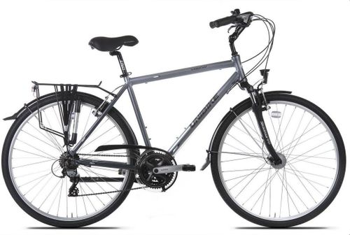 W pełni wyposażone rowery turystyczne na kołach 28". Wielostopniowa regulacja wspornika kierownicy oraz szerokie siodło zapewnią komfortowe pokonywanie kolejnych kilometrów. Rowery z tej grupy idealnie nadają się zarówno na krótkie wypady jak i na wielkie wyprawy. Kompletne napędy SHIMANO gwarantują wysokie przebiegi bez konieczności częstych wizyt w serwisie. Rama: 700C / ALU 6061 / MĘSKA 19", 21", 23" Widelec: SR SUNTOUR CR-7V / SKOK 40MM Komplet sterowy: GWINT FSA TH-805ST / 1-1/8" / WEWNĘTRZNY Kierownica: COMFORT / ALU Chwyty: SELLE ROYAL / SKÓRA ECO / RĘCZNIE SZYTA Wspornik kierownicy: UNO GRADE COMFORT / REGULOWANY Wspornik siodła: UNO GRADE OE Siodło: SELLE SAN MARCO QUADRA Pedały: VP / TWORZYWO / POWIERZCHCNIA ANTYPOŚLIZGOWA Oświetlenie: BUCHEL UNI LED (15 LUX) / AXA SLIM STEAD (FUNKCJA STOP) Podpórka: STANDWELL / CENTRALNA / REGULOWANA / ALU Bagażnik: STAL / PRZYSTOSOWANY DO SAKW / PASEK / UCHWYT DO POMPKI Błotnik: i SKS GERMANY / TWORZYWO PET / CHLAPACZE Manetki: SHIMANO ALTUS EF65 Przerzutka przednia: SHIMANO TX51 Przerzutka tylna: SHIMANO ACERA M360 Hamulce: SHIMAONO ACERA M422 Dźwignie hamulca: SHIMANO ALTUS EF65 Kaseta: SHIMANO TURNEY TZ21 / 14-28T (7-biegów) Łańcuch: SHIMANO UG51 Mechanizm korbowy: SHIMANO TOURNEY M171 / 48X38X28T / OSŁONA HERMANS T-WAVE Środek suportu: TH / 7420ST-S / ŁOŻYSKA MASZYNOWE / PODWÓJNE USZCZELNIENIE Obręcze: MACH1 210 / SREBRNE Piasty: SHIMANO 3N31 (PRĄDNICA) / KT QUANDO / ALU / QR / 36H / SREBRNE Szprychy: SAPIM / NIERDZEWNE Opony: IMPAC TOURPAC / 28x1.60 Dętki: SCHWALBE / AV Wyposażenie: POMPKA SKS ROOKI, DZWONEK, ODBLASKI, OSŁONA PRZERZUTKI Ilość biegów: 21 Waga: 17,20 kg